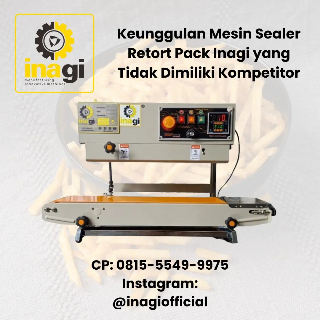 Mesin Sealer Retort Pack Inagi adalah alat yang digunakan untuk menyegel kemasan retort pouch yaitu kemasan fleksibel tahan panas yang biasa dipakai untuk makanan siap saji, sambal, sarden, dan aneka lauk olahan.