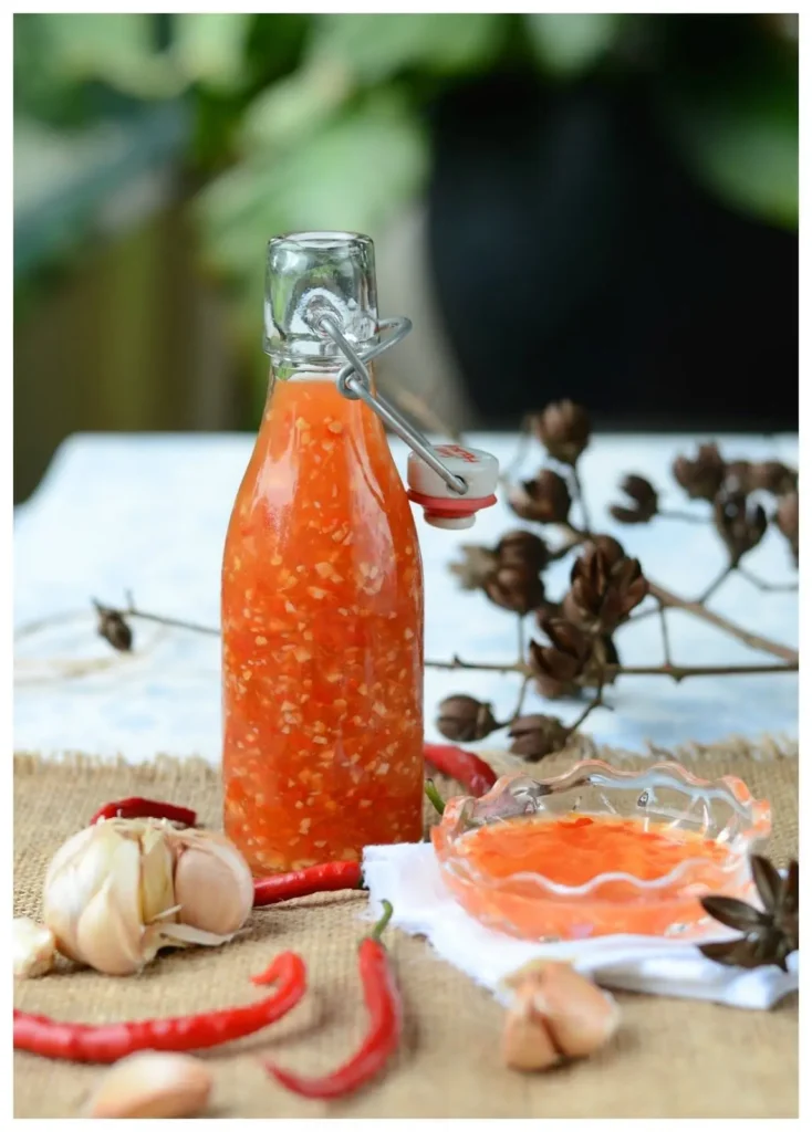 Bahan utama seperti cabai, bawang, gula, garam, dan cuka dibersihkan dengan baik agar bebas kotoran dan bakteri.