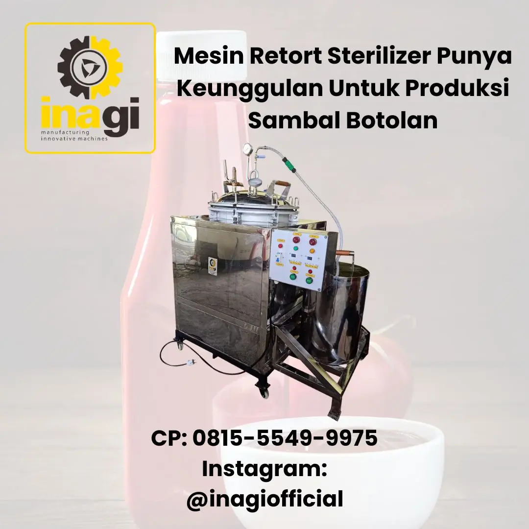 Keunggulan utama mesin ini adalah kemampuannya mensterilkan produk setelah dikemas, sehingga risiko kontaminasi ulang menjadi sangat kecil. Untuk sambal botolan, ini adalah poin krusial.