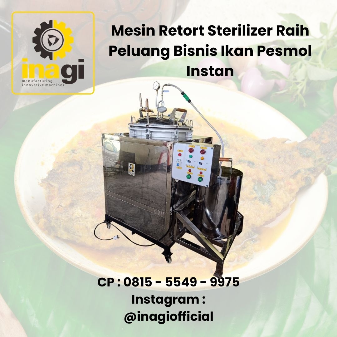 INAGI – Makanan instan berbahan ikan semakin diminati oleh masyarakat karena kepraktisannya dan kandungan gizinya yang tinggi. Salah satu olahan ikan yang populer adalah ikan bumbu pesmol, makanan khas Indonesia yang memiliki cita rasa kaya rempah dan disukai oleh banyak orang. Dengan meningkatnya permintaan makanan siap saji, bisnis ikan bumbu pesmol instan menjadi peluang yang sangat menjanjikan. Untuk dapat meraih peluang tersebut bisa menggunakan mesin retort sterilizer.