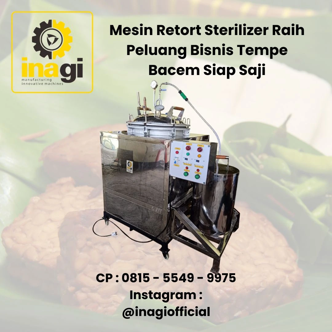 Menggunakan mesin retort sterilizer Inagi adalah solusi terbaik bagi produsen yang ingin mengembangkan bisnis tempe bacem instan dengan masa simpan lebih lama dan kualitas tetap terjaga. Dengan efisiensi produksi dan peluang pasar yang luas, bisnis ini memiliki potensi besar untuk berkembang. Jangan lewatkan peluang bisnis ini! Segera gunakan mesin retort sterilizer Inagi untuk produksi tempe bacem instan berkualitas tinggi. Hubungi kami sekarang di :