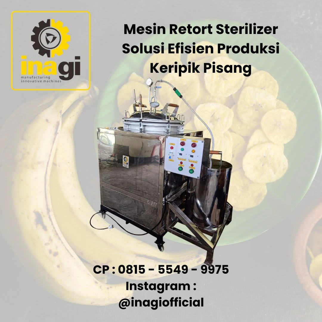 Solusinya? Mesin Retort Sterilizer INAGI! Dengan teknologi sterilisasi canggih, mesin retort sterilizer mampu memperpanjang umur simpan keripik pisang dalam kemasan pack, menjaga kerenyahan, dan memastikan keamanan pangan. Inilah saatnya bagi pelaku usaha untuk meningkatkan efisiensi produksi dan daya saing di pasar!