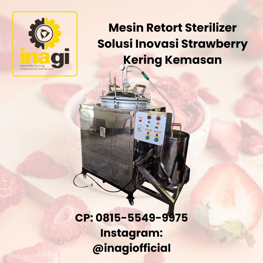 Memasuki dunia usaha makanan olahan yang kompetitif butuh lebih dari sekadar ide produk menarik. Anda butuh sistem produksi yang kuat, aman, dan tahan uji waktu. Mesin retort sterilizer bukan hanya alat, tapi solusi strategis untuk mengembangkan usaha olahan makanan seperti strawberry kering dan keripik kentang balado dalam kemasan pack. Dengan menggabungkan inovasi rasa, keamanan pangan, dan efisiensi produksi, Anda akan lebih siap bersaing di pasar lokal hingga internasional. Hubungi kami sekarang untuk konsultasi gratis dan demo penggunaan mesin retort sterilizer di lini produksi Anda. Dapatkan mesin di :