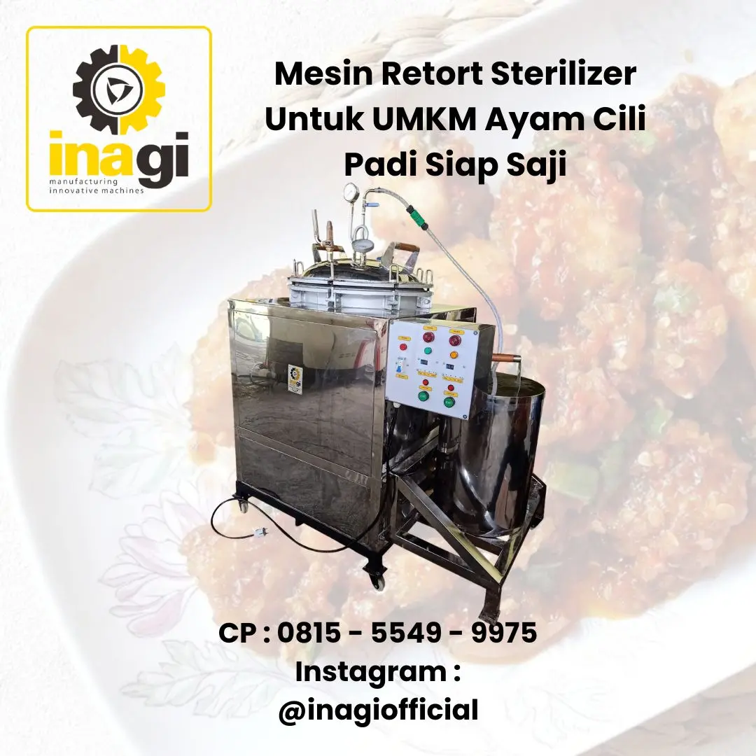 Produksi ayam cili padi dalam kemasan pack merupakan peluang bisnis yang sangat potensial di era makanan praktis. Dengan teknologi mesin retort sterilizer, Anda tidak hanya dapat menghasilkan produk yang tahan lama dan higienis, tetapi juga mempertahankan cita rasa pedas khas yang disukai konsumen. Mesin retort Inagi hadir sebagai solusi bagi pelaku usaha kuliner yang ingin naik kelas ke produksi skala besar. Segera wujudkan ide bisnis Anda dengan mengintegrasikan mesin retort ke dalam lini produksi. Hubungi kami di :