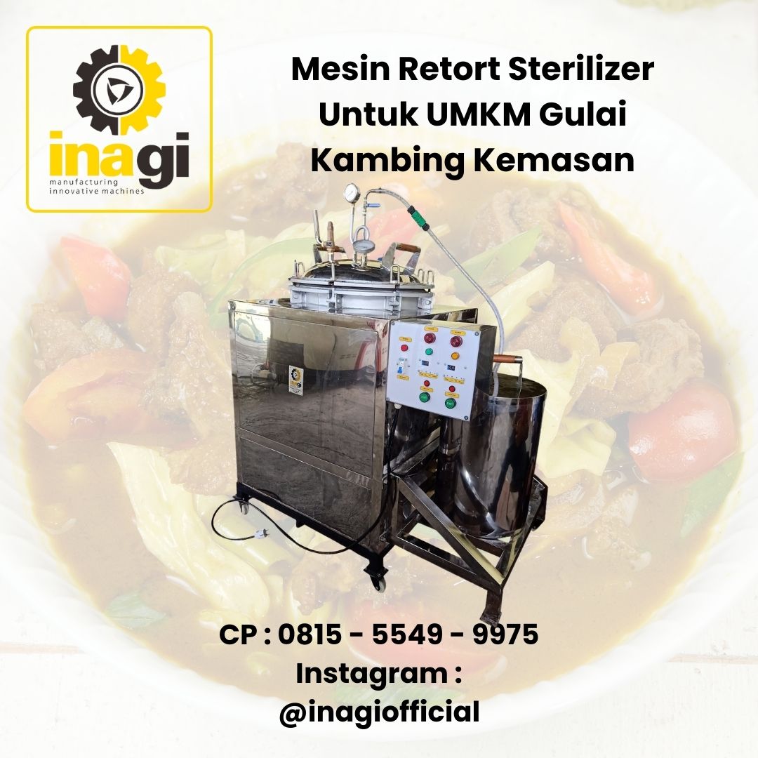 Mesin retort sterilizer menjadi solusi inovatif bagi UMKM yang ingin memproduksi gulai kambing dalam kemasan dengan kualitas terbaik. Teknologi ini tidak hanya meningkatkan umur simpan produk tetapi juga menjaga cita rasa dan kebersihannya. Dengan alat ini, UMKM dapat memperluas pasar dan bersaing di industri makanan siap saji yang semakin berkembang. Jika Anda adalah pelaku UMKM yang ingin meningkatkan produksi makanan kemasan dengan standar tinggi, mesin retort sterilizer Inagi adalah pilihan terbaik. Hubungi kami sekarang di :