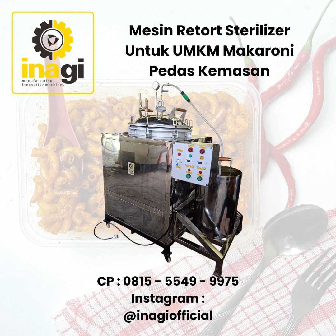 Bisnis makaroni pedas dalam kemasan pouch memiliki prospek yang sangat menjanjikan. Namun, tantangan dalam masa simpan, kerenyahan, dan keamanan produk harus diatasi dengan teknologi yang tepat. Mesin Retort Sterilizer INAGI adalah solusi terbaik untuk membantu produsen meningkatkan efisiensi produksi, memperpanjang daya tahan produk, dan memperluas pasar. Ingin meningkatkan skala bisnis Anda? Hubungi kami sekarang di :