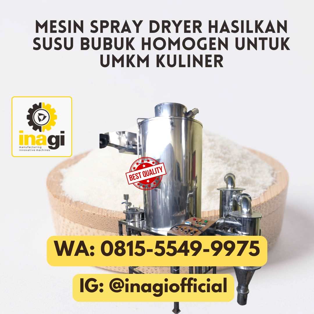 Pada industri olahan minuman kemasan seperti susu bubuk, inovasi pada pengolahan sangat penting untuk meningkatkan kualitas dan masa simpan produk. Salah satu teknologi yang kini banyak dimanfaatkan oleh pelaku usaha mikro, kecil, dan menengah (UMKM) adalah mesin spray dryer. Mesin ini menjadi solusi tepat untuk pembuatan susu bubuk kemasan, yang mana semakin disukai karena praktis dan memiliki masa simpan lebih lama.