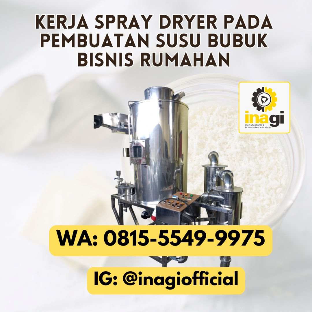 Pada bisnis susu bubuk yang kini berkembang pesat, terutama pada aktivitas Usaha Mikro, Kecil, dan Menengah (UMKM). Salah satu teknologi yang mendukung produksi susu bubuk berkualitas adalah mesin spray dryer. Dengan teknologi ini, susu cair dapat dikeringkan menjadi bubuk tanpa mengurangi kandungan gizi dan rasanya. Selain itu, mesin spray dryer juga membantu memperpanjang masa simpan susu bubuk, sehingga lebih tahan lama tanpa bahan pengawet tambahan.