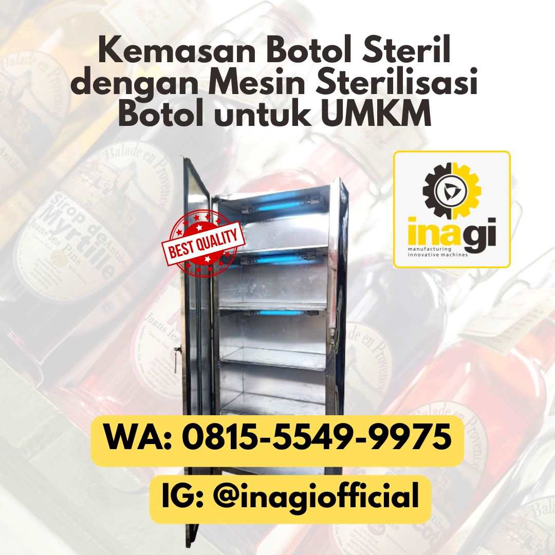 Mesin sterilisasi botol merupakan investasi yang diperlukan bagi pelaku usaha minuman kemasan, terutama UMKM untuk dapat meningkatkan kualitas produk minuman kemasan. Dengan kemasan botol yang higienis, bisnis minuman akan lebih terpercaya di mata konsumen dan memiliki penjualan yang lebih tinggi di pasaran. Jika bisnis Anda ingin menjalankan bisnis minuman kemasan dengan standar kebersihan yang lebih baik, penggunaan mesin sterilisasi botol dapat menjadi langkah yang tepat.